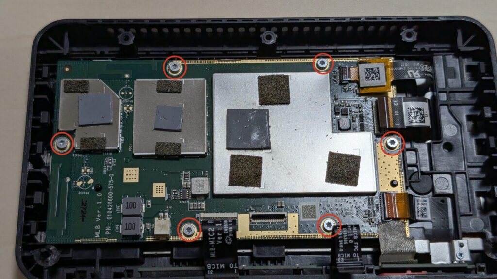 完全放電しても治らなかった場合はデバイスに物理的な問題がある可能性が高くこれ以降は分解を伴います。まずは「ディスプレイを繋ぎ直して治るか?」を試してみましょう。